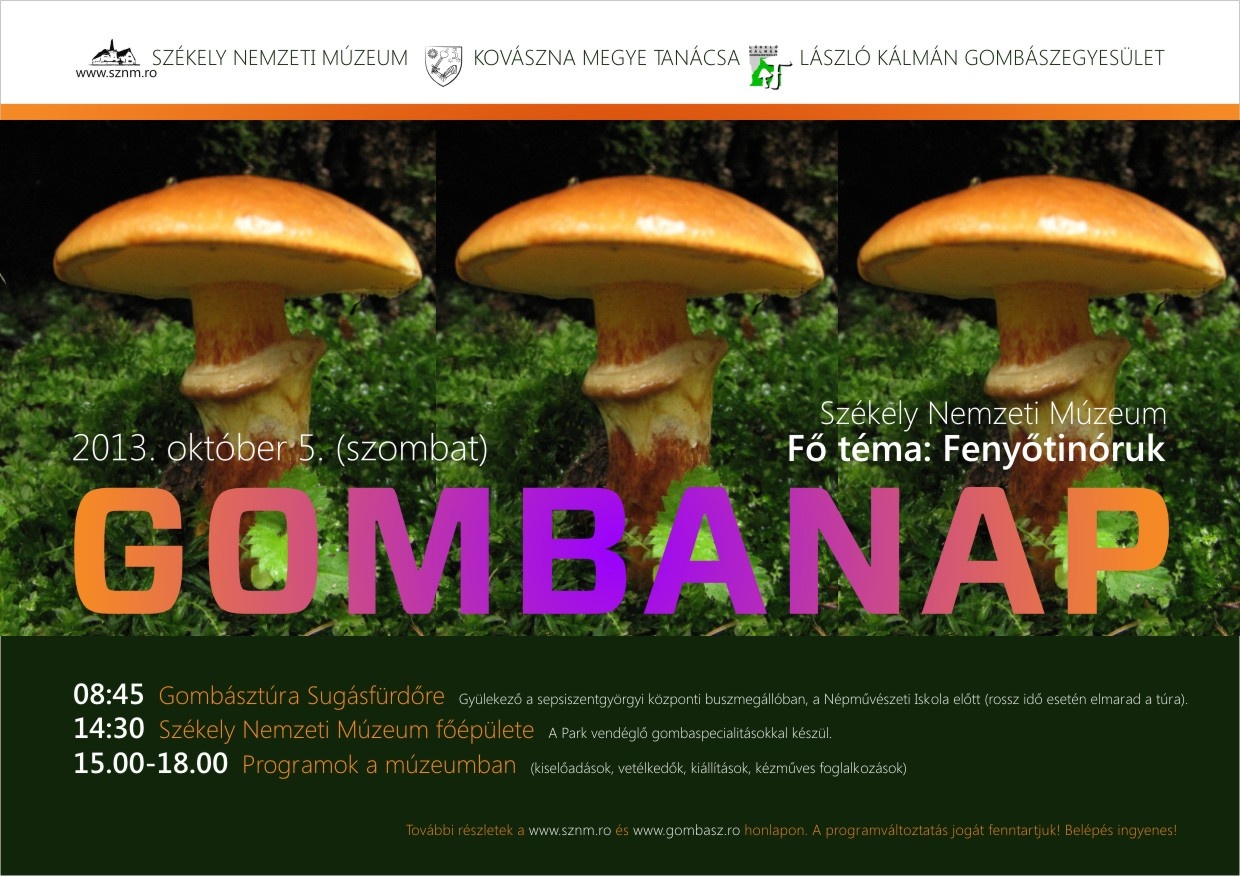 A László Kálmán Gombászegyesület és a Székely Nemzeti Múzeum szervezésében 2013. október 5-én, szombaton ismét megrendezik az évek során már hagyományossá vált Gombanapot. Az idén a fenyőtinóruk lesz a családi nap témája.